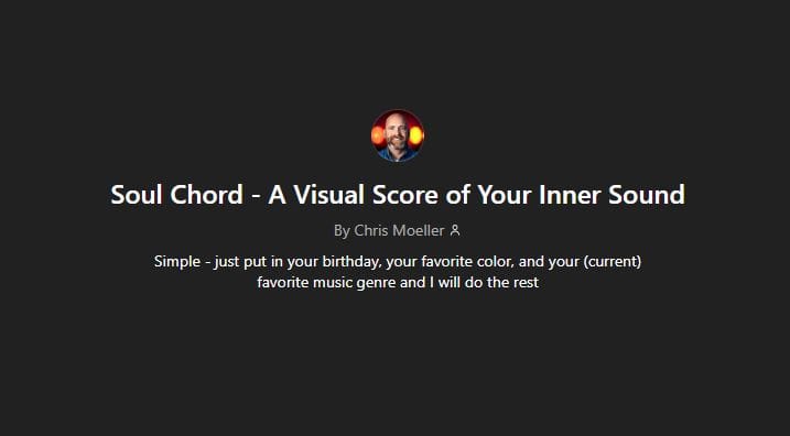 Soul Chord takes three simple inputs — your birth date, your favorite color, and your favorite music genre — and weaves them into a full profile. It blends music theory and color theory with astrology and numerology into a poetic map of traits, patterns, and archetypes.