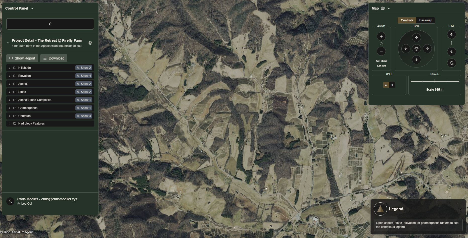 Landscope allows us to do terrain assessments from the comfort of our browser. Currently informing hillshade, elevation, aspect, slope, aspect slope composite, geomorphons, contours, and hydrology - this tool allows us to stop making costly mistakes, allowing us to make smart land decisions with real clarity.