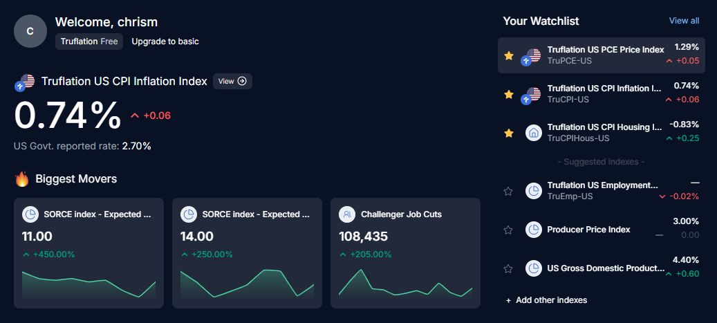 Real-time CPI, inflation components, and macro indicators derived from transparent, unbiased sources.